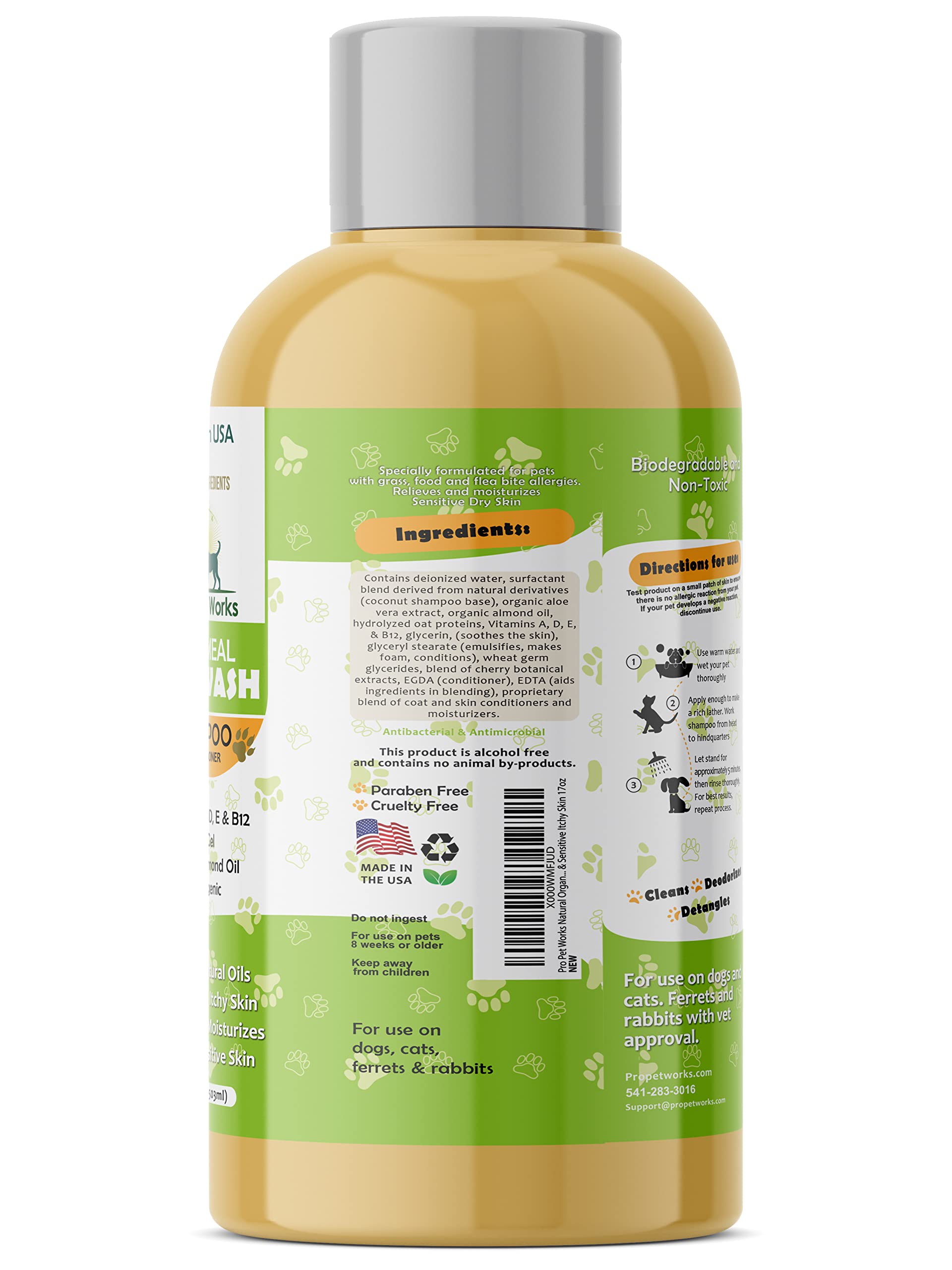 Amazon Com Pro Pet Works Organic All Natural 5 In 1 Oatmeal Dog Shampoo Conditioner Made In Usa For Dandruff Allergies Itchy Dry Sensitive Skin Puppy Grooming For Smelly Dogs Cats Soap